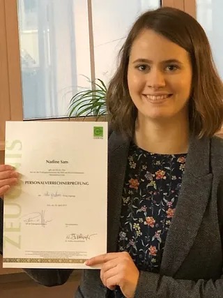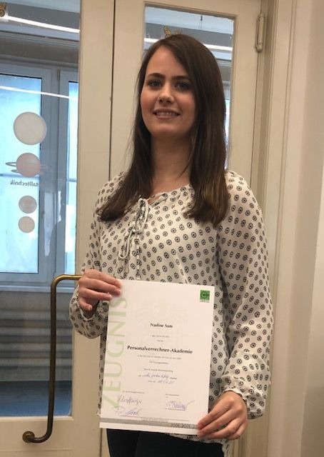 Nadine Sam, BA absolvierte die Prüfung zur Personalverrechnerin mit sehr gutem Erfolg. Wir gratulieren ganz herzlich!